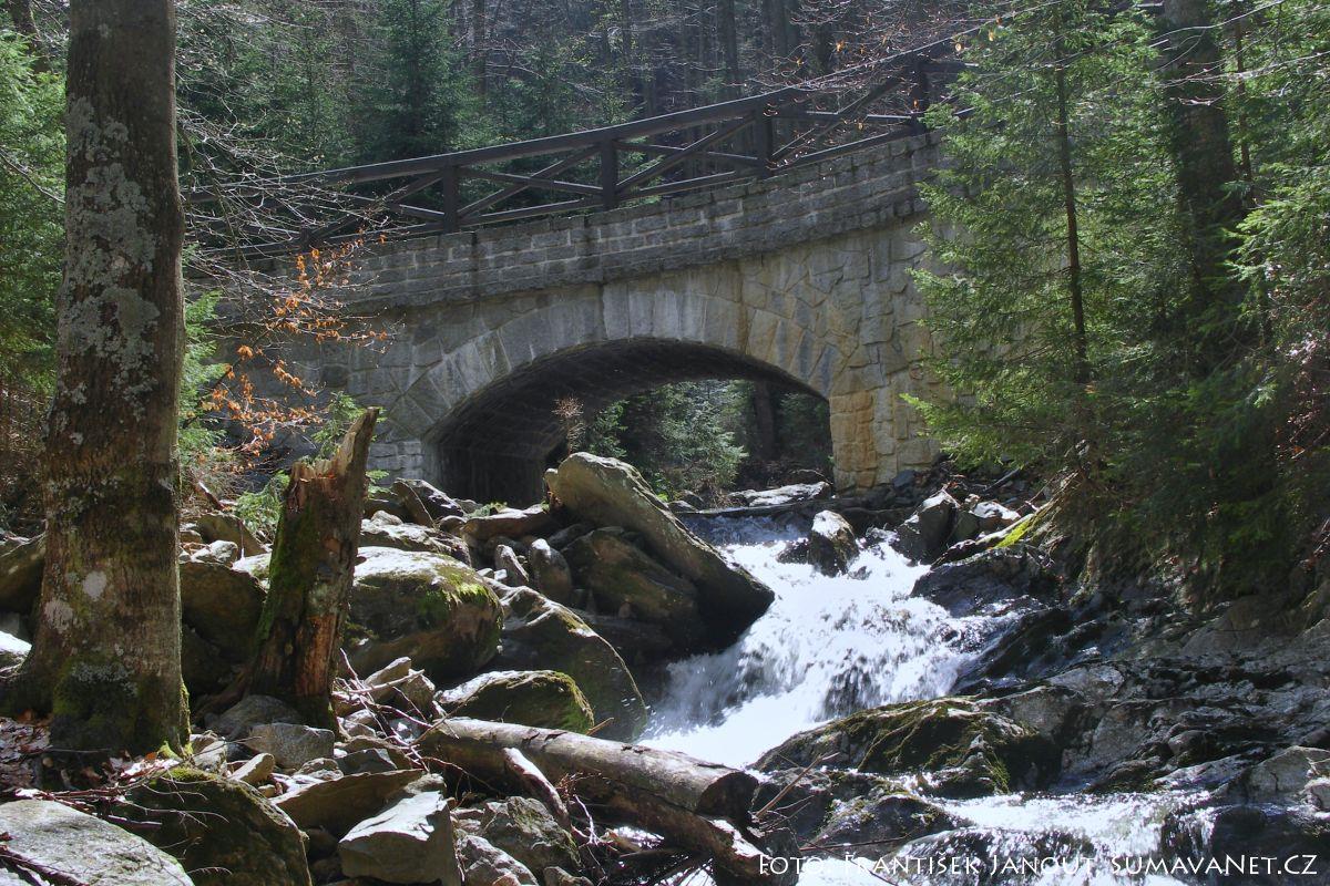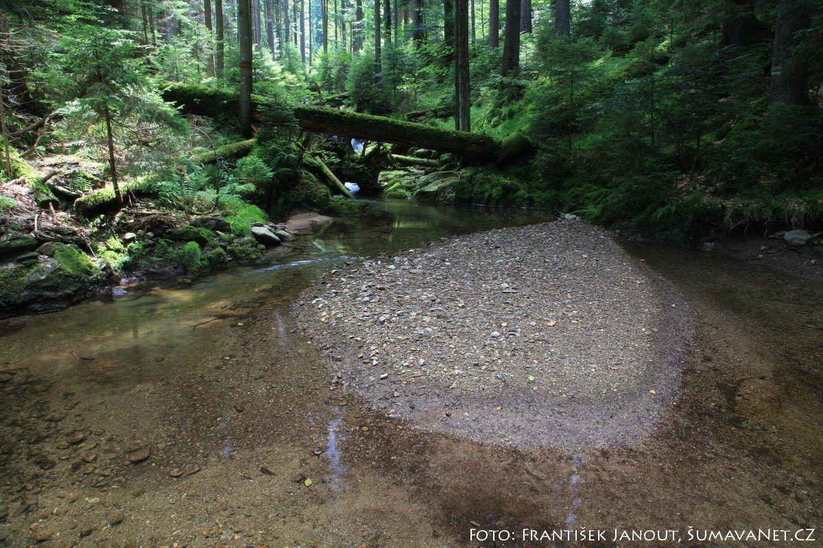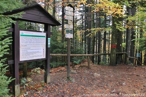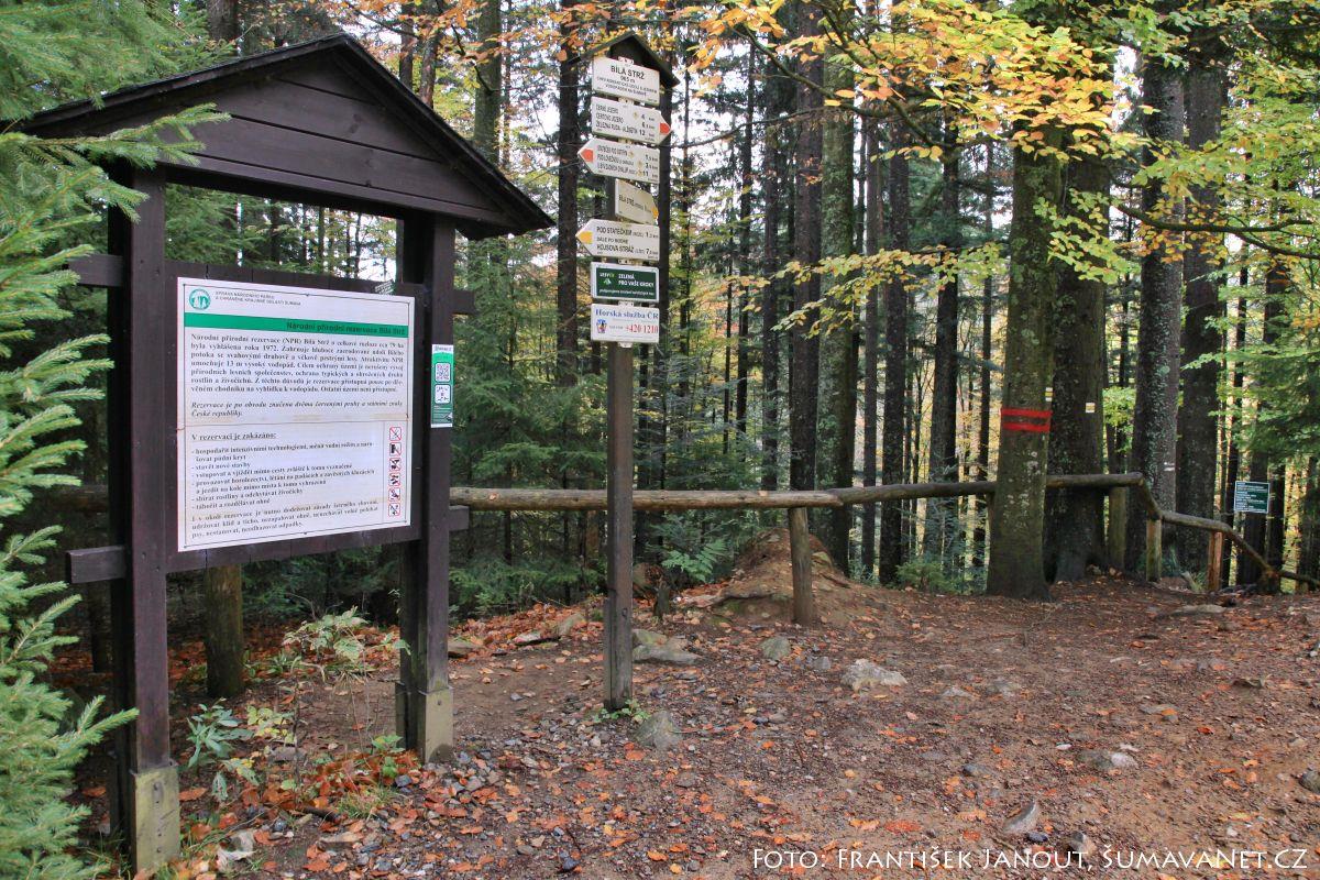 Autem: Ze Železné Rudy po silnici 169 směr Nýrsko na Špičácké sedlo, zde je parkoviště (placené) = výchozí místo (C). Při volbě dalších výchozích míst pokračovat dál po silnici 169 cca 600 m a odbočit takřka do protisměru (ukazatel směr Hamry). Úzká poškozená silnice klesá 5,5 km na Zadní Hamry - most přes řeku Úhlavu. Při volbě výchozího bodu (B) po přejezdu mostu pokračovat přímo silničkou necelé 2 km vzhůru lesem k železniční stanici Hamry-Hojsova Stráž a tady zaparkovat. Při volbě výchozího bodu (A) po přejezdu mostu odbočit po hlavní silnici doleva, dojet do obce Hamry, kde těsně za mostem přes Úhlavu odbočit z hlavní silnice doleva na parkoviště před hotelem Královský dvůr