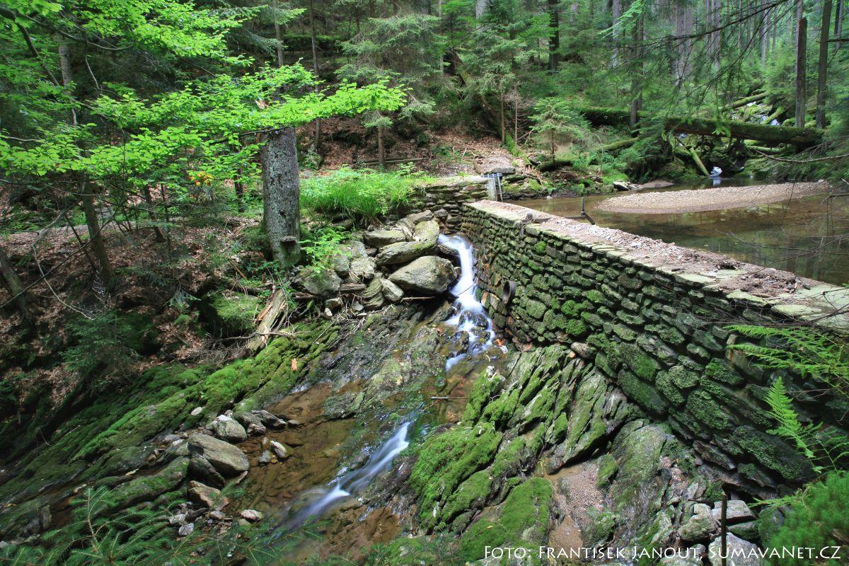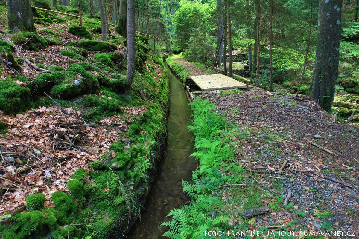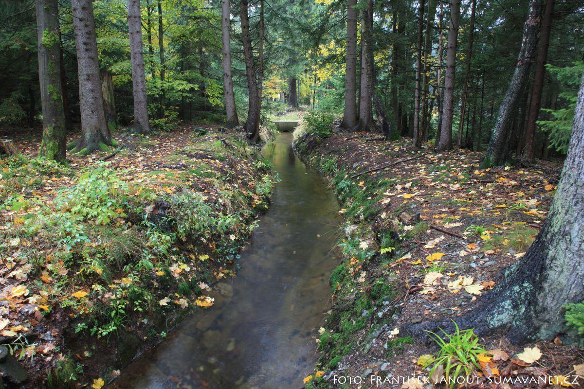 Při této cestě, po vystoupání svahem přes louku (cca 1,5 km od Zadních Hamrů), přijdete k vodnímu zámku. Ale žádné honosné šlechtické sídlo či dokonce noblesní šlechtičny tady neuvidíte. V malé dřevěné stavbě je ukryta vyrovnávací komora, sloužící k regulaci přítoku vody, která sem přitéká vodním kanálem z malé přehrady na Bílém potoce. Z vyrovnávací komory voda proudí 2,5 kilometru dlouhým potrubím se spádem 190 m na Peltonovu turbínu v Hamrech. Bílý potok se tak stává nejen přírodním skvostem, ale i výrobcem elektřiny odpovídající roční spotřebě 270-ti domácností.